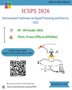 09oct(oct 9)9:00 am10(oct 10)5:00 pmInternational Conference on Signal Processing and Security 2026ICSPS 20269:00 am - 5:00 pm (10)(GMT+02:00) Event Organized ByCORE Conferences